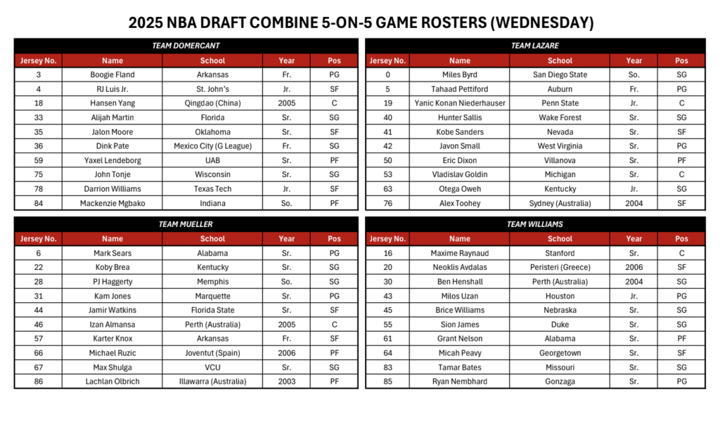 Lendeborg will participate in combine scrimmages Wednesday. He’s on Team Domercant, which will face Goldin and Team Lazare. Here are the rosters for Wednesday:
