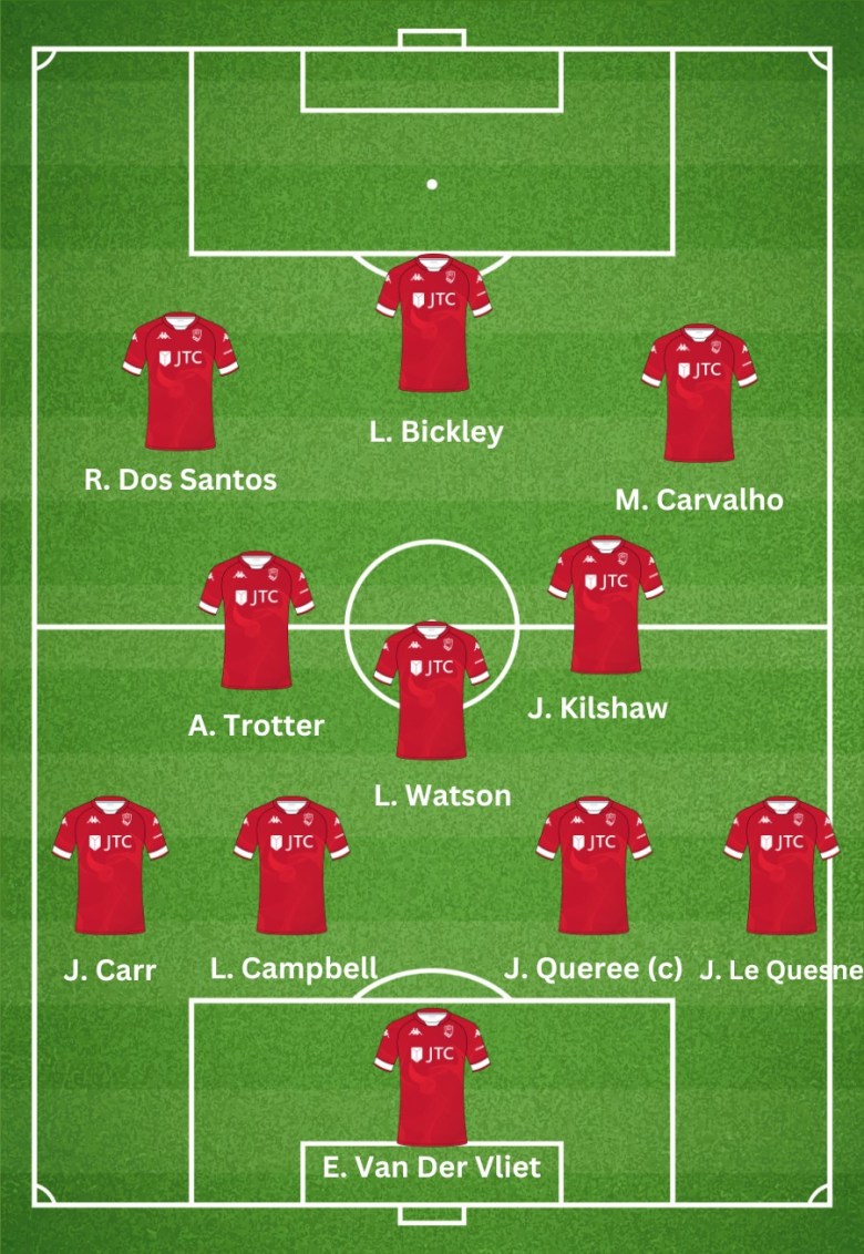 My favoured front three remains the same with Rai Dos Santos on the left, leading goalscorer Lorne Bickley up top and finally, the tricky Miguel Carvalho off the right.