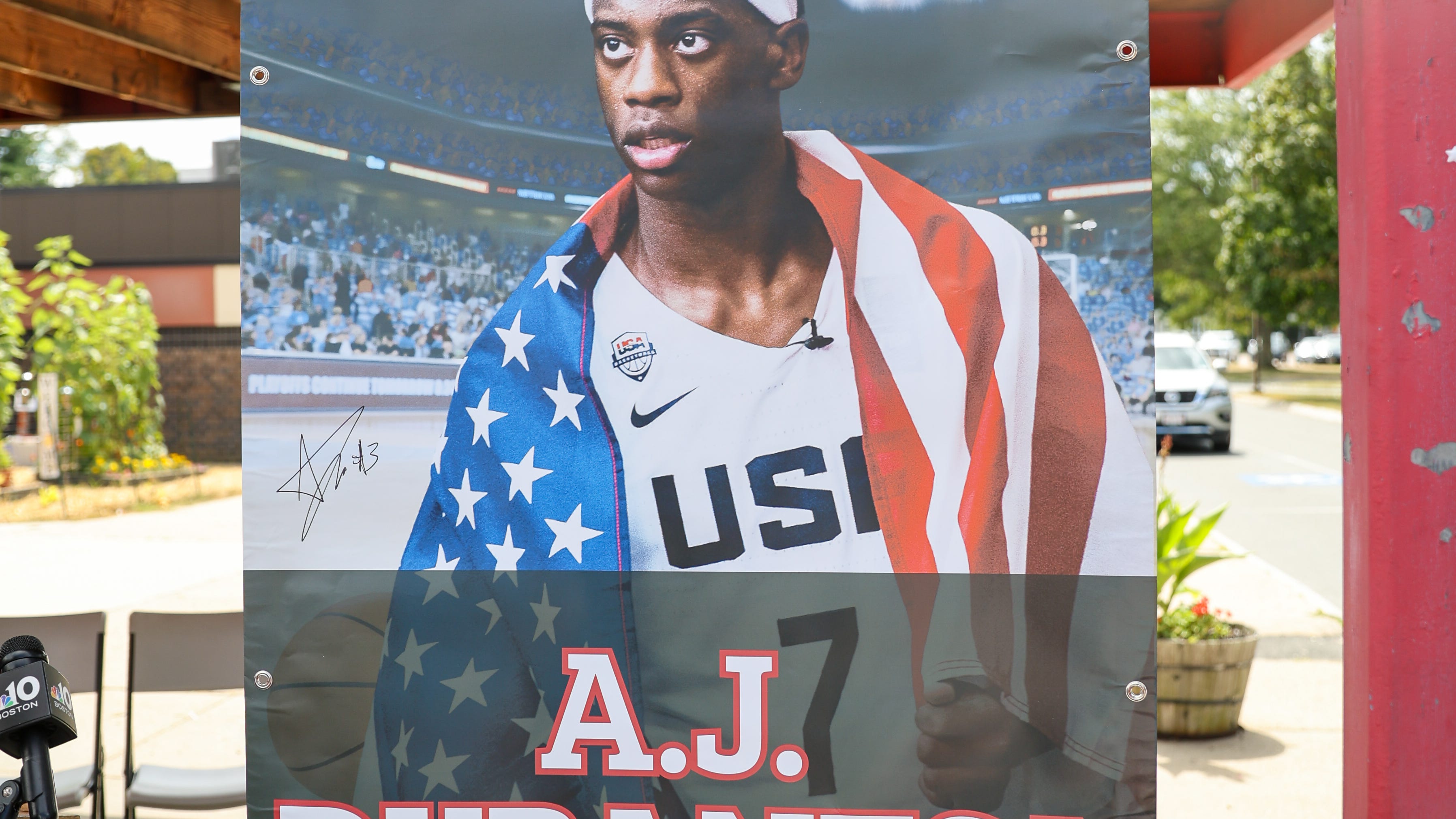 WATCH: AJ Dybantsa banner unveiled at Davis School in Brockton