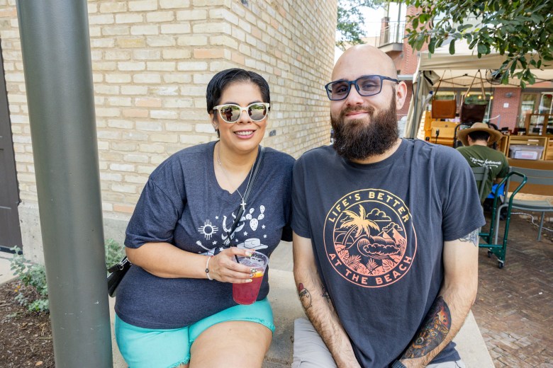 Lifelong San Antonio resident Victoria Palacios, 38, and her partner Patrick live on the South Side. Victoria says she grew up seeing a lot of community around the Spurs but the team, like all sports, has changed. Credit: Amber Esparza / San Antonio Report
