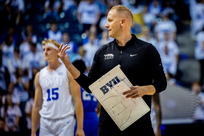 Head coach Kevin Young coaches during BYU basketball’s annual Blue-White Scrimmage at the Marriott Center in Provo on Thursday, Oct. 9, 2025. | Tess Crowley, Deseret News