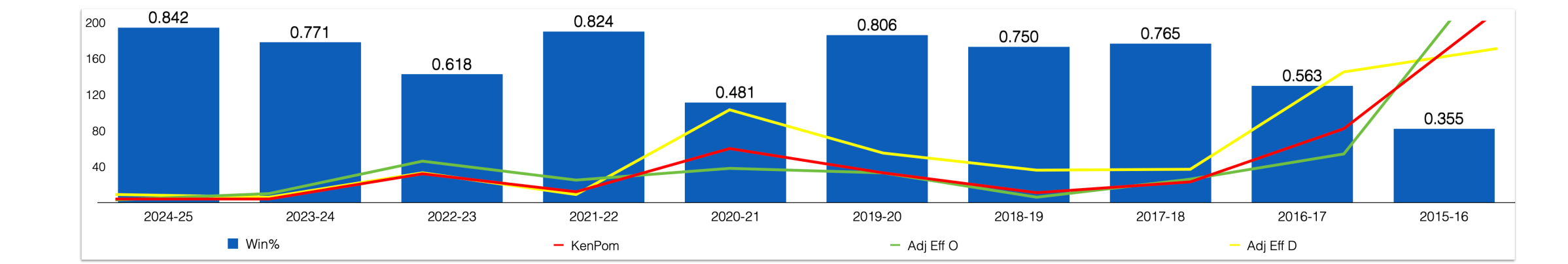 Once Pearl got it going, he really only had one bad season and that was the COVID year where Auburn only played 27 games, and their best player only played in 12 of them. Otherwise it was an incredible run. The next worst season was a 9 seed year in 2023.