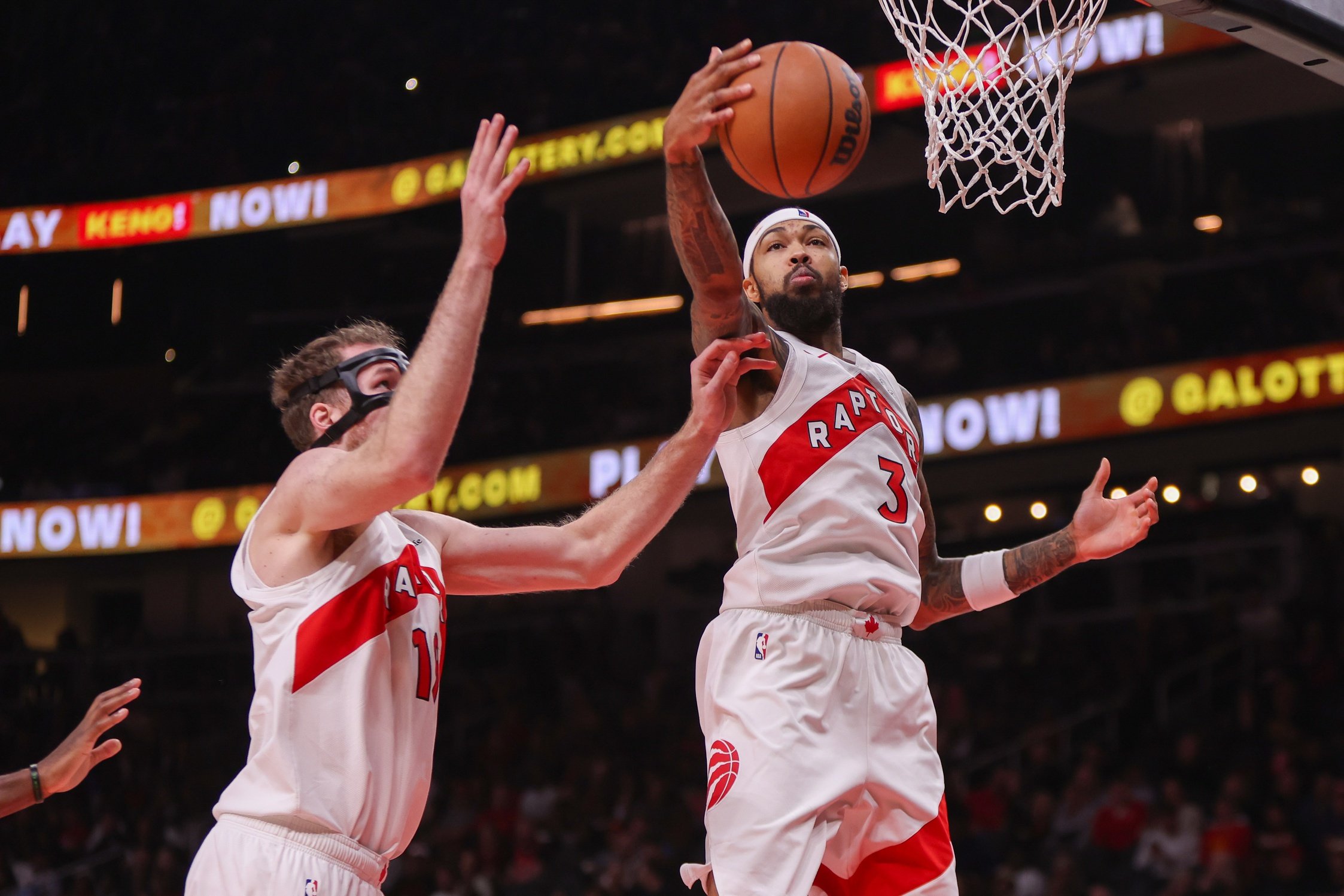 After scoring the first points of the game off a pair of Jalen Johnson free-throws, Raptors forward Brandon Ingram tied the score on the next possession. After taking the lead via two more free-throws, this time by Kristaps Porzingis, Raptors wing RJ Barrett was able to score the next time down. Following a turnover from Trae Young, Barrett put the ball through the net again, his 3-ball pure.