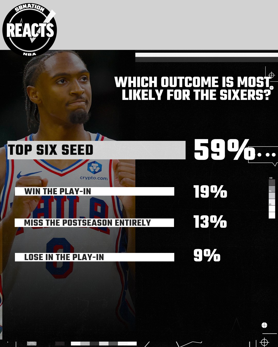 With a dominating 59% of the vote, readers said the most likely outcome for the Sixers’ regular season would be a spot in the top six seeds in the Eastern Conference.