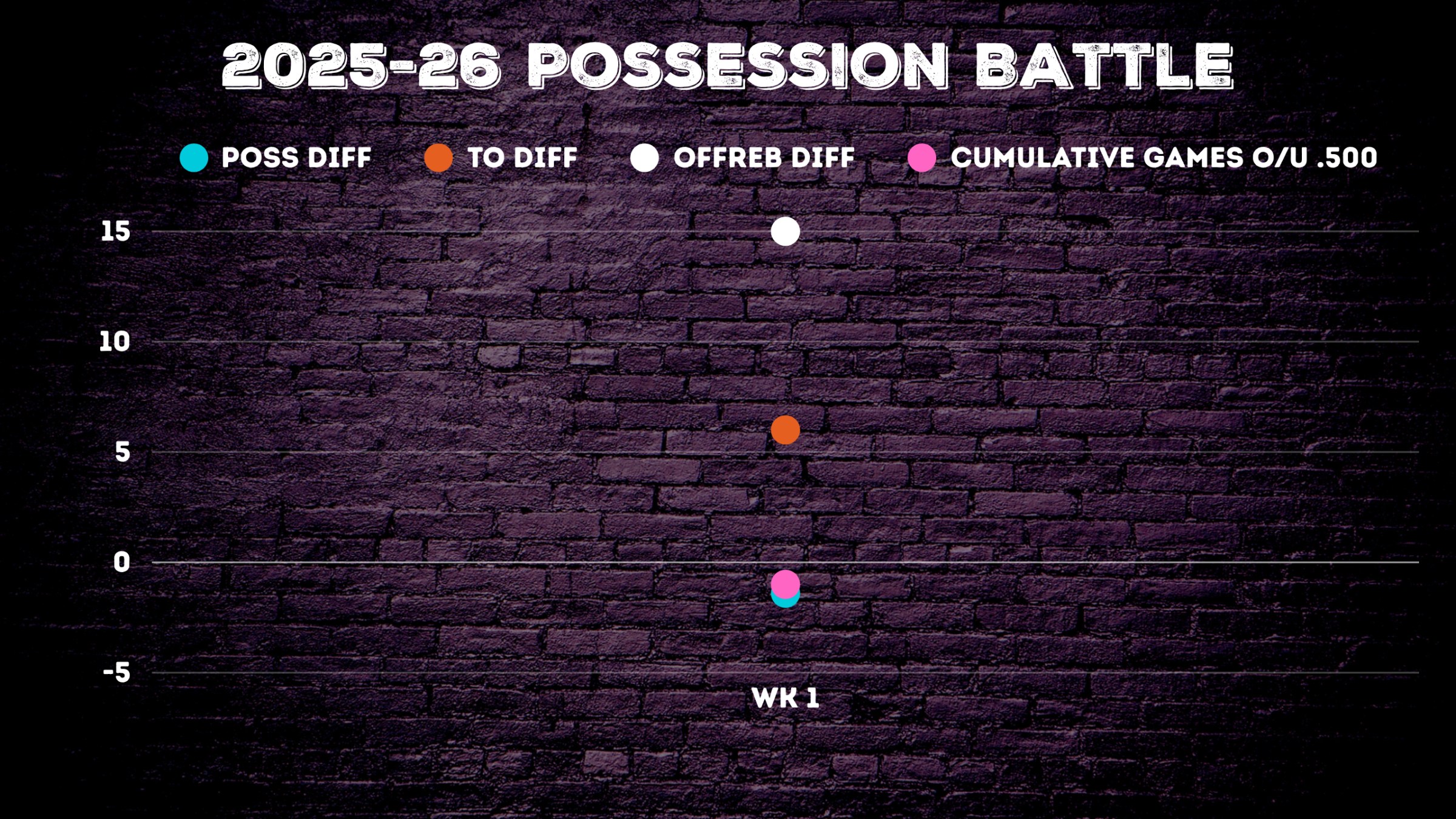 Weekly Possession Differential: -1.4Weekly Turnover Differential: +6Offensive Rebounding Differential: +15Year-to-Date Over/Under .500: -1