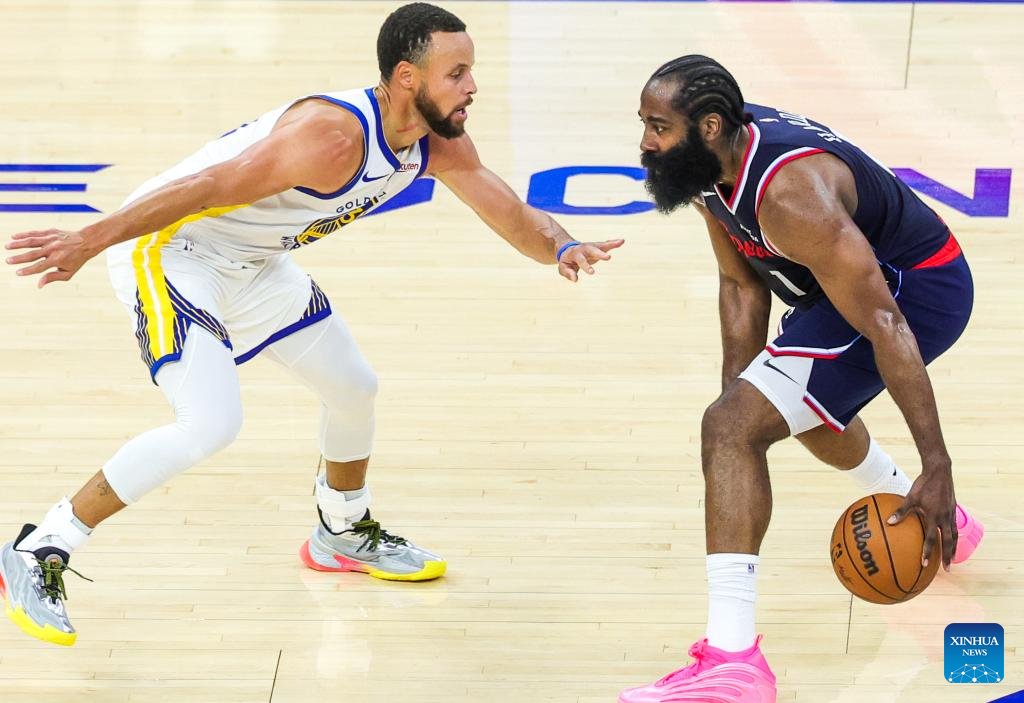 Stephen Curry (L) of Golden State Warrior vies with James Harden of Los Angeles Clippers during the 2025-2026 NBA regular season match between Golden State Warriors and Los Angeles Clippers in San Francisco, the United States, on Oct. 28, 2025. (Photo by Arthur Dong/Xinhua)