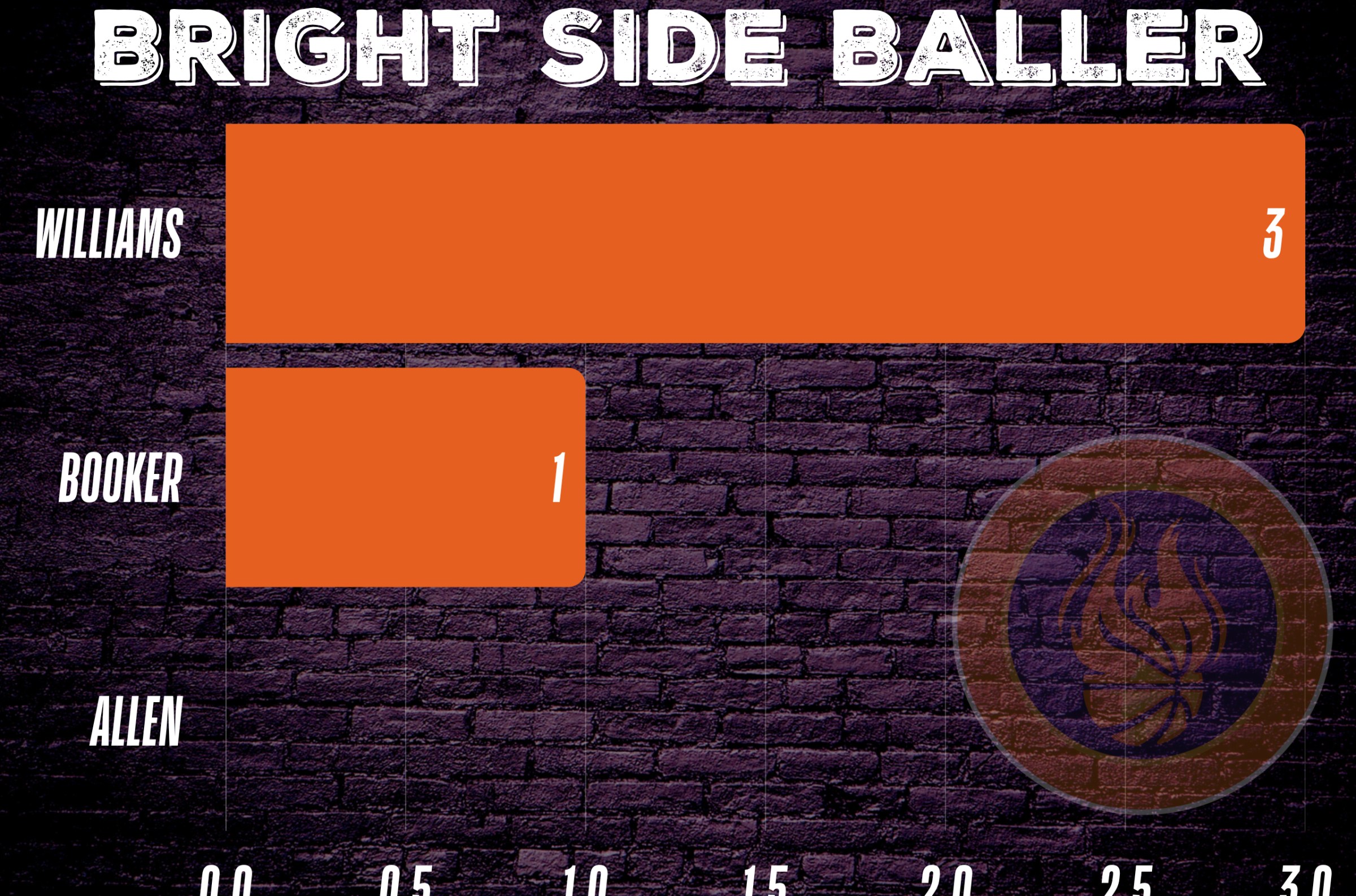 After another demolition job against the Grizzlies on Wednesday, Williams snagged 55% of the BSB vote. That gives him three Bright Side Ballers in four games. Three. In. Four. The man is stacking trophies like they’re empty Gatorade bottles.