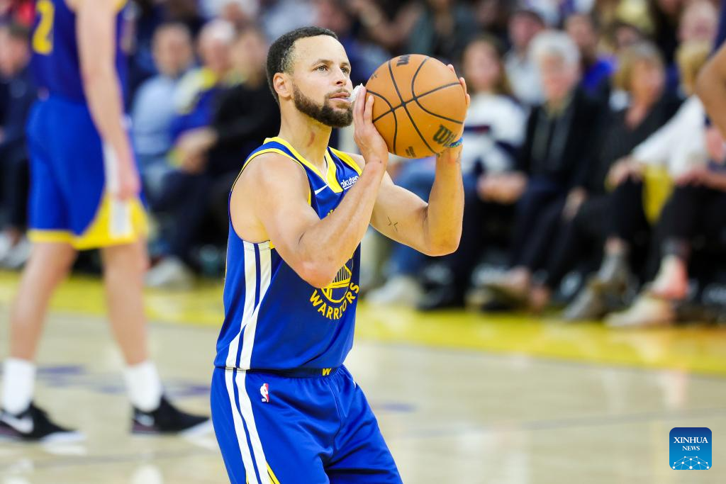 Stephen Curry of Golden State Warriors competes during the 2025-2026 NBA regular season match between Phoenix Suns and Golden State Warriors in San Francisco, the United States, on Nov. 4, 2025. (Photo by Dong Xudong/Xinhua)