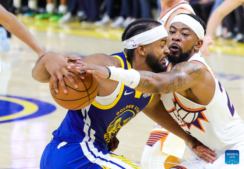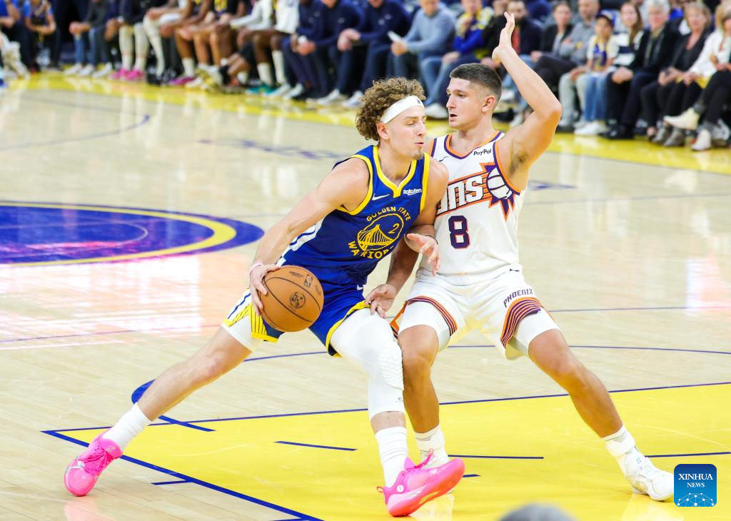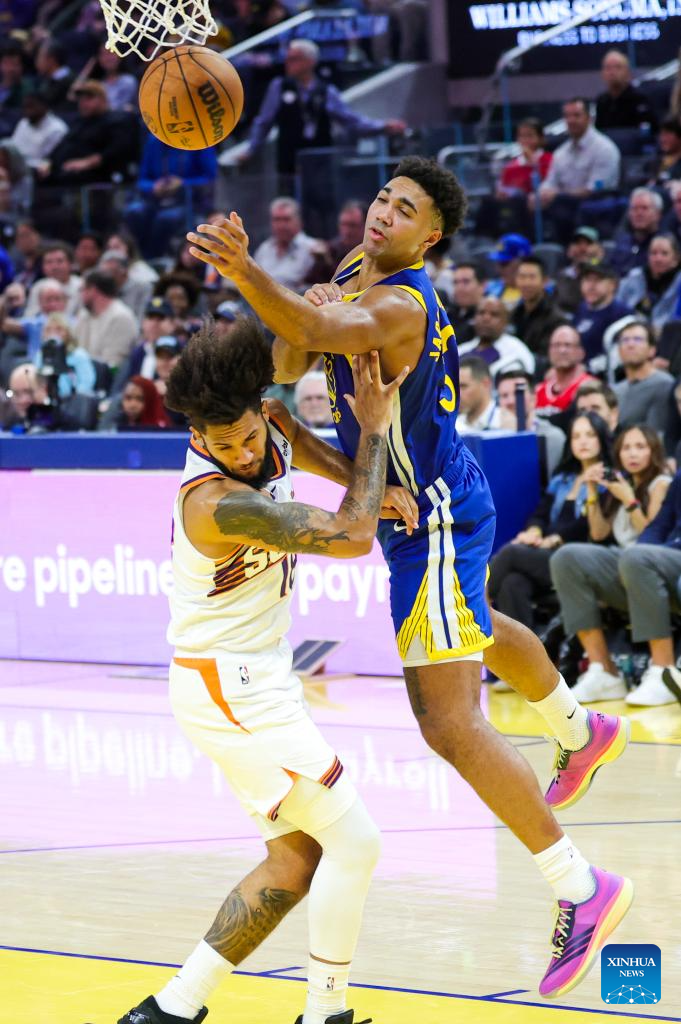 Moses Moody of Golden State Warriors vies for the ball during the 2025-2026 NBA regular season match between Phoenix Suns and Golden State Warriors in San Francisco, the United States, on Nov. 4, 2025. (Photo by Dong Xudong/Xinhua)