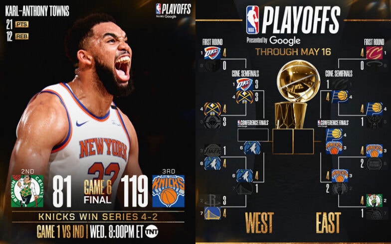 What’s Next: The Knicks advance to face the 4-seed Pacers in the Eastern Conference Finals. Game 1 is set for Wednesday, May 21 (8 ET, TNT) from Madison Square Garden as the Knicks hold home-court advantage over their longtime rivals (more in Section 4 ⬇️).