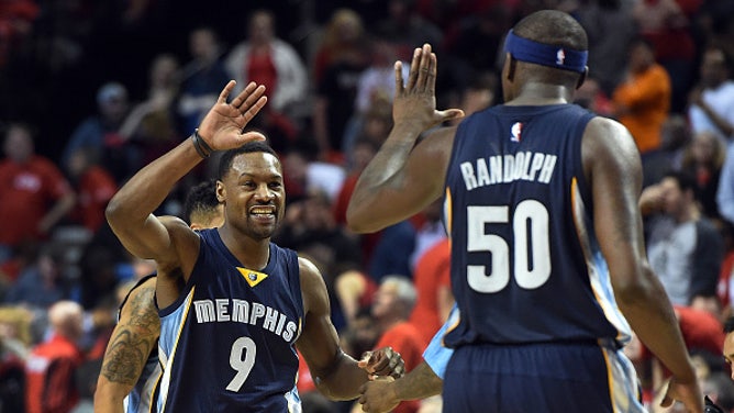PORTLAND, OR – APRIL 25: Tony Allen #9 of the Memphis Grizzlies clebrates with Zach Randolph #50 of the Memphis Grizzlies during the fourth quarter in Game Three of the Western Conference quarterfinals against the Portland Trail Blazers during the 2015 NBA Playoffs at the Moda Center on April 25, 2015 in Portland, Oregon. (Photo by Steve Dykes/Getty Images)