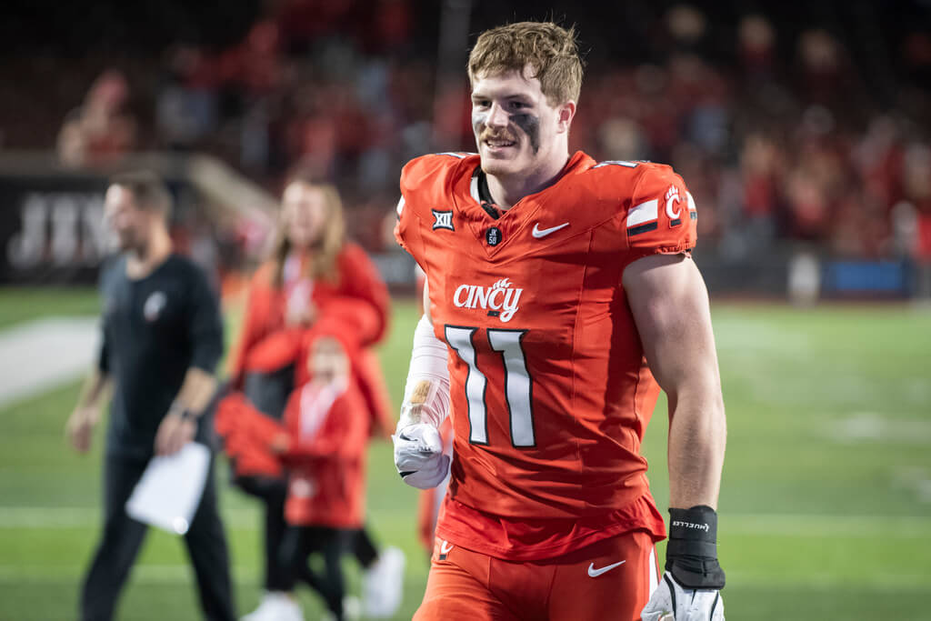 A former defensive end in the FCS (Central Arkansas), Golday transferred to Cincinnati, moved to strongside linebacker and put himself on the NFL radar.