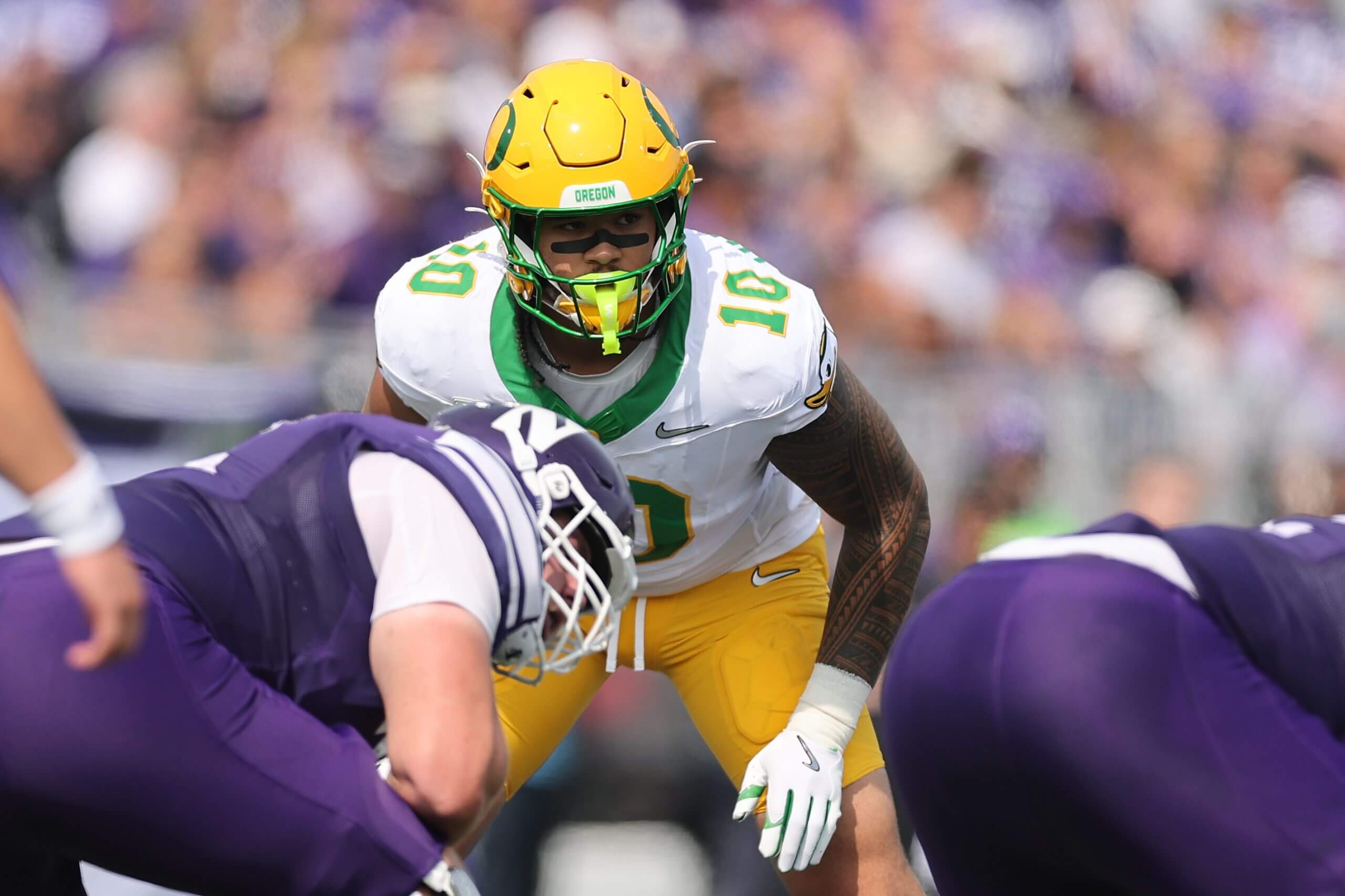 Uiagalelei, who is still piecing together how to be a more efficient pass rusher, has had a quieter season than most expected (16 tackles, four sacks).