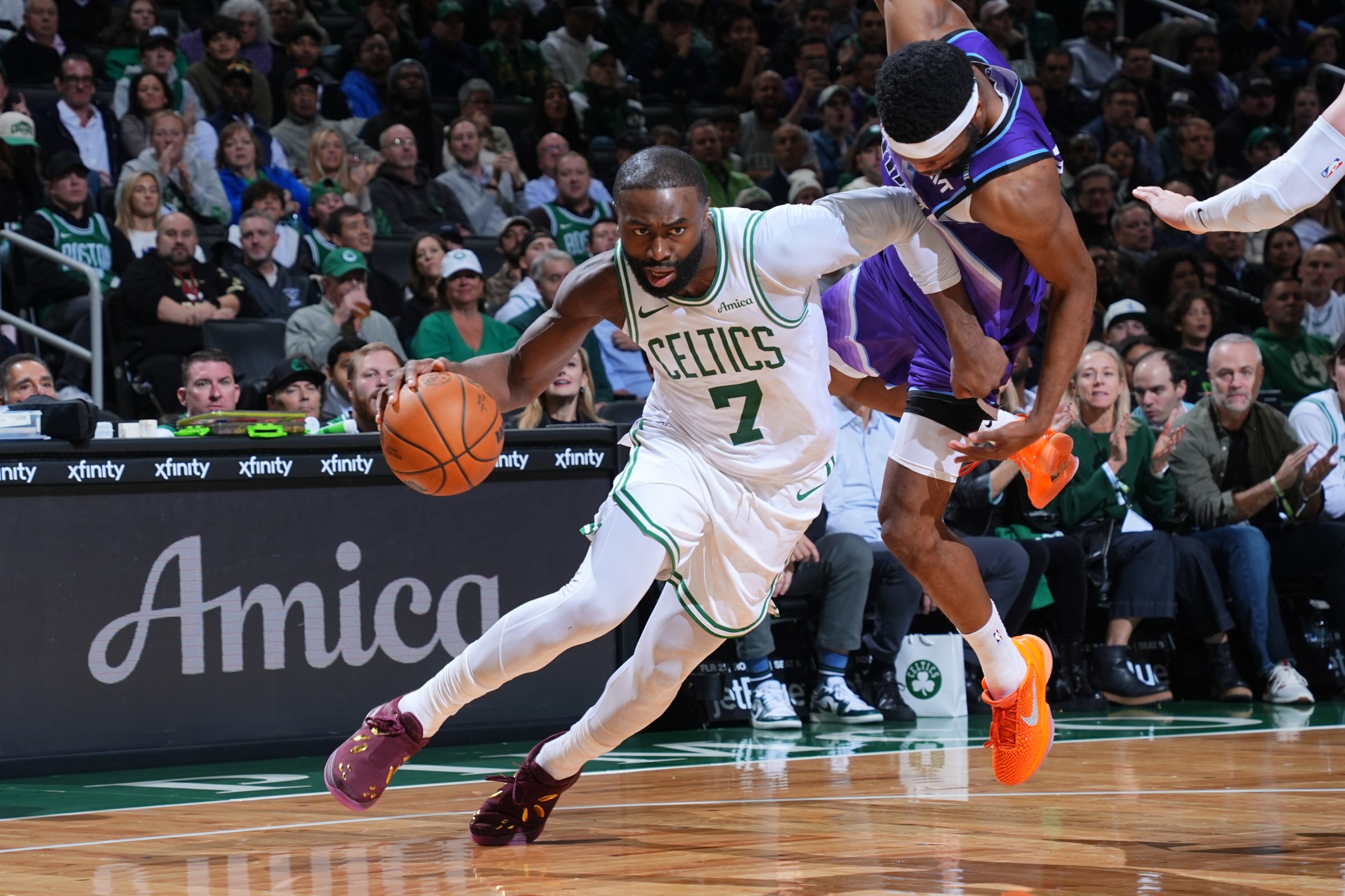 BOSTON, MA – NOVEMBER 3: Jaylen Brown #7 of the Boston Celtics drives to the basket during the game against the Utah Jazz on November 3, 2025 at TD Garden in Boston, Massachusetts. NOTE TO USER: User expressly acknowledges and agrees that, by downloading and/or using this Photograph, user is consenting to the terms and conditions of the Getty Images License Agreement. Mandatory Copyright Notice: Copyright 2025 NBAE (Photo by Brian Babineau/NBAE via Getty Images) NBAE via Getty Images