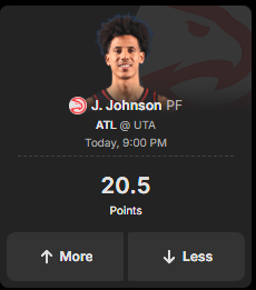 Johnson is rolling this season with 20.5 PPG, 8.7 RPG, and 5.5 APG. He’s also shooting 58.6% from the floor and there’s still room for him to improve. Despite Trae Young’s injury, Johnson has sustained his efficient shooting but hasn’t started taking more shots than he did last season. He’s coming off a 24 point, 10-rebound, eight assist game in just 24 minutes with a monster +39 in a rout over the Sacramento Kings.