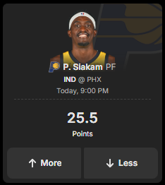 Phoenix is an average defense this season, sitting at 14th in the NBA. Siakam is putting in a lot of work with 24.6 PPG on the season and should continue lifting Indiana’s offense. They’re unfortunately 1-10, an ugly record that reflects on the negative impact of losing Tyrese Haliburton for the season. As a result of the Pacers’ reliance on Siakam, he’s putting up a career-high 19.9 FGA. He hasn’t been as efficient as he usually is, but he’ll continue putting up a ton of shots and should exceed 25.5 points tonight.