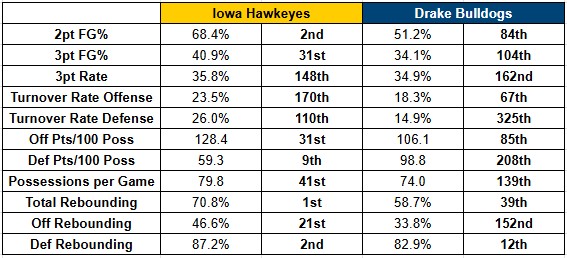 A deeper look at the advanced stats behind the matchup between the Hawkeyes and Bulldogs…