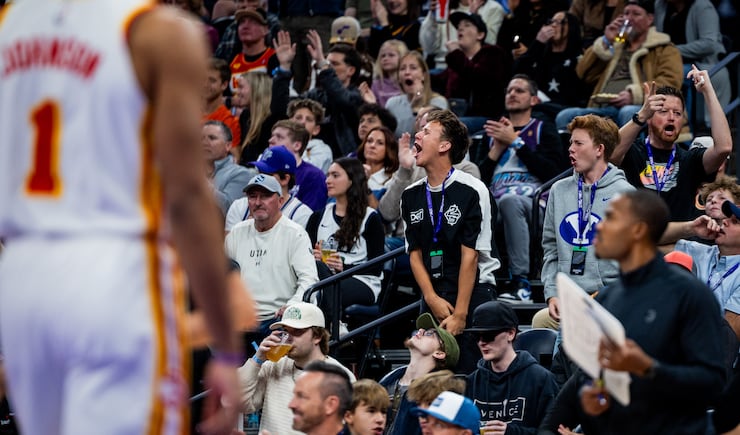 Utah Jazz fans cheer during an NBA game against the Atlanta Hawks at the Delta Center in Salt Lake City on Thursday, Nov. 13, 2025. | Tess Crowley, Deseret News