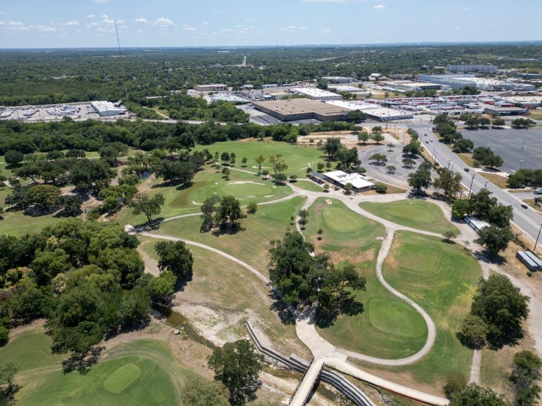 A drone shot of Willow Springs Golf Course, located at 202 AT&T Parkway in San Antonio taken in August 2025. Credit: Cooper Mock for the San Antonio Report
