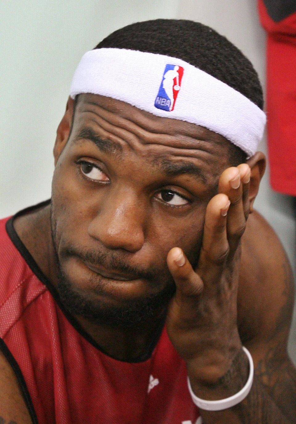 LeBron James sits during a training session in the leadup to the Cleveland Cavaliers exhibition match against the Orlando Magic in Shanghai in October 2007.