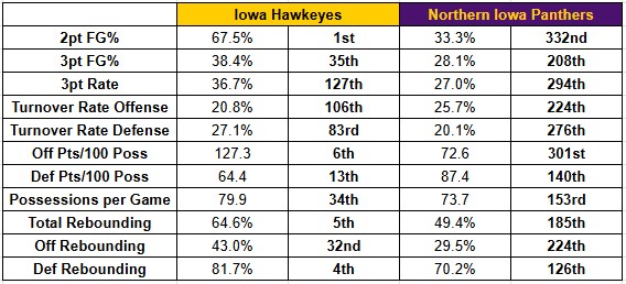A deeper look at the advanced stats behind the matchup between the Hawkeyes and Panthers…