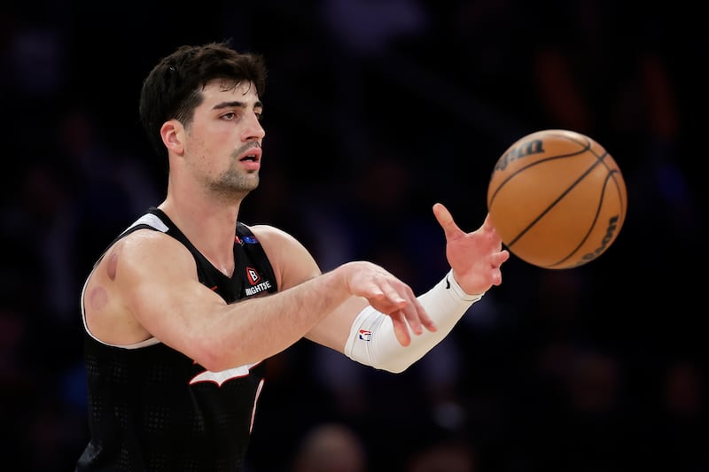 Egor Demin = Deni AvdijaPortland Trail Blazers forward Deni Avdija passes the ball during the second half of an NBA basketball game against the New York Knicks Sunday, March 30, 2025, in New York. | Adam Hunger, AP