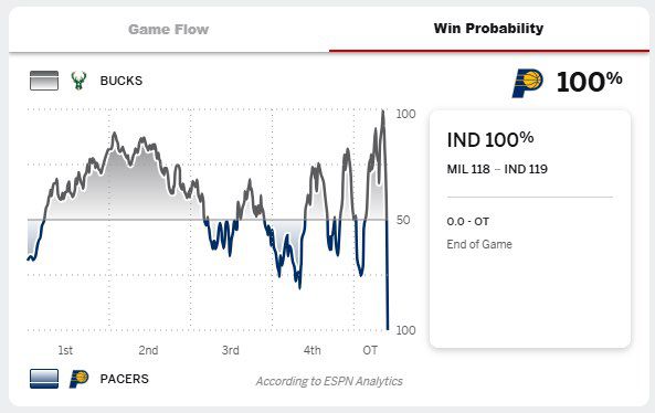 The Pacers came out swinging to start, scoring four straight points on Nesmith and McConnell buckets. McConnell kept giving the Bucks fits, scoring six points in the frame and assisting on a thunderous dunk from Turner. The dunk forced a timeout from Doc Rivers to resettle the troops with the Bucks down by five. It seemed to work, the Bucks going on a 9-0 run to take a four-point lead before Siakam got a wide-open layup to cut the lead back down to two. After Trent started 0/7 from three, he rebounded to go 4/5 in the later part of the third quarter, including some big buckets down the stretch. The Bucks were down by two with the shot clock running out, but Trent nailed a three, followed by a massive three from Green to give the Bucks a four-point lead with a minute and 20 seconds to go. Tyrese Haliburton came up big for the Pacers, scoring four straight points to tie the game with 10.8 seconds left. Giannis was able to get up a fading mid-range jumper, but it hit off the far rim, sending the game to overtime with the game set at 103-103.
