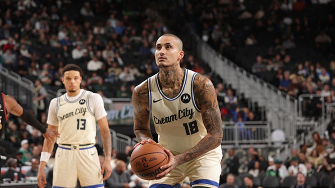 MILWAUKEE, WI – NOVEMBER 20: Kyle Kuzma #18 of the Milwaukee Bucks shoots a free throw during the game against the Philadelphia 76ers on November 20, 2025 at Fiserv Forum Center in Milwaukee, Wisconsin. (Photo by Gary Dineen/NBAE via Getty Images).