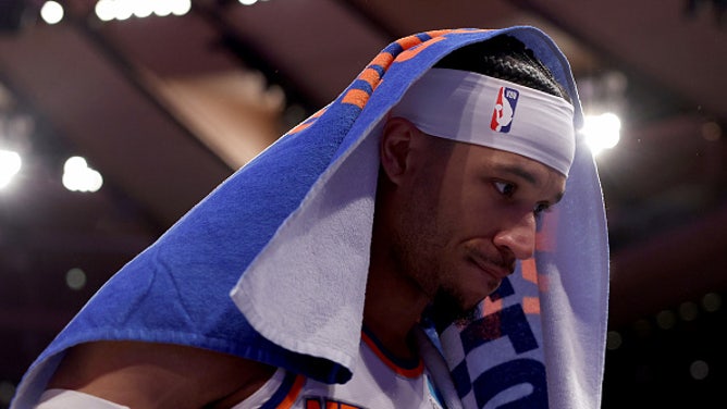 Josh Hart of the New York Knicks walks off the court after losing to the Indiana Pacers 130-109 in Game Seven of the Eastern Conference Second Round Playoffs at Madison Square Garden on May 19, 2024 in New York City. (Photo by Elsa/Getty Images)