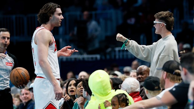 Aussie NBA star Josh Giddey was involved in the removal of a fan after he was heckled during Chicago‘s 123-116 loss to the Charlotte Hornets.