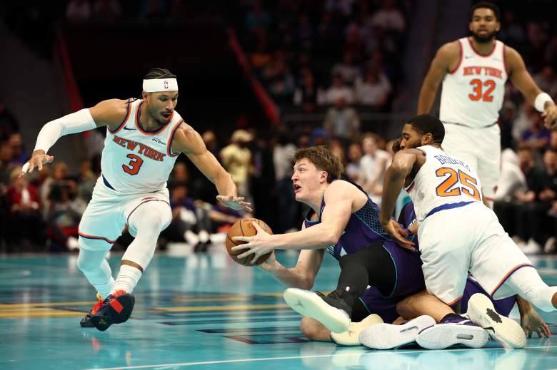 CHARLOTTE, NORTH CAROLINA – NOVEMBER 26: Josh Hart #3 of the New York Knicks reacts following a dunk during the first quarter of the game against the Charlotte Hornets at Spectrum Center on November 26, 2025 in Charlotte, North Carolina. NOTE TO USER: User expressly acknowledges and agrees that, by downloading and or using this photograph, User is consenting to the terms and conditions of the Getty Images License Agreement. (Photo by Jared C. Tilton/Getty Images)