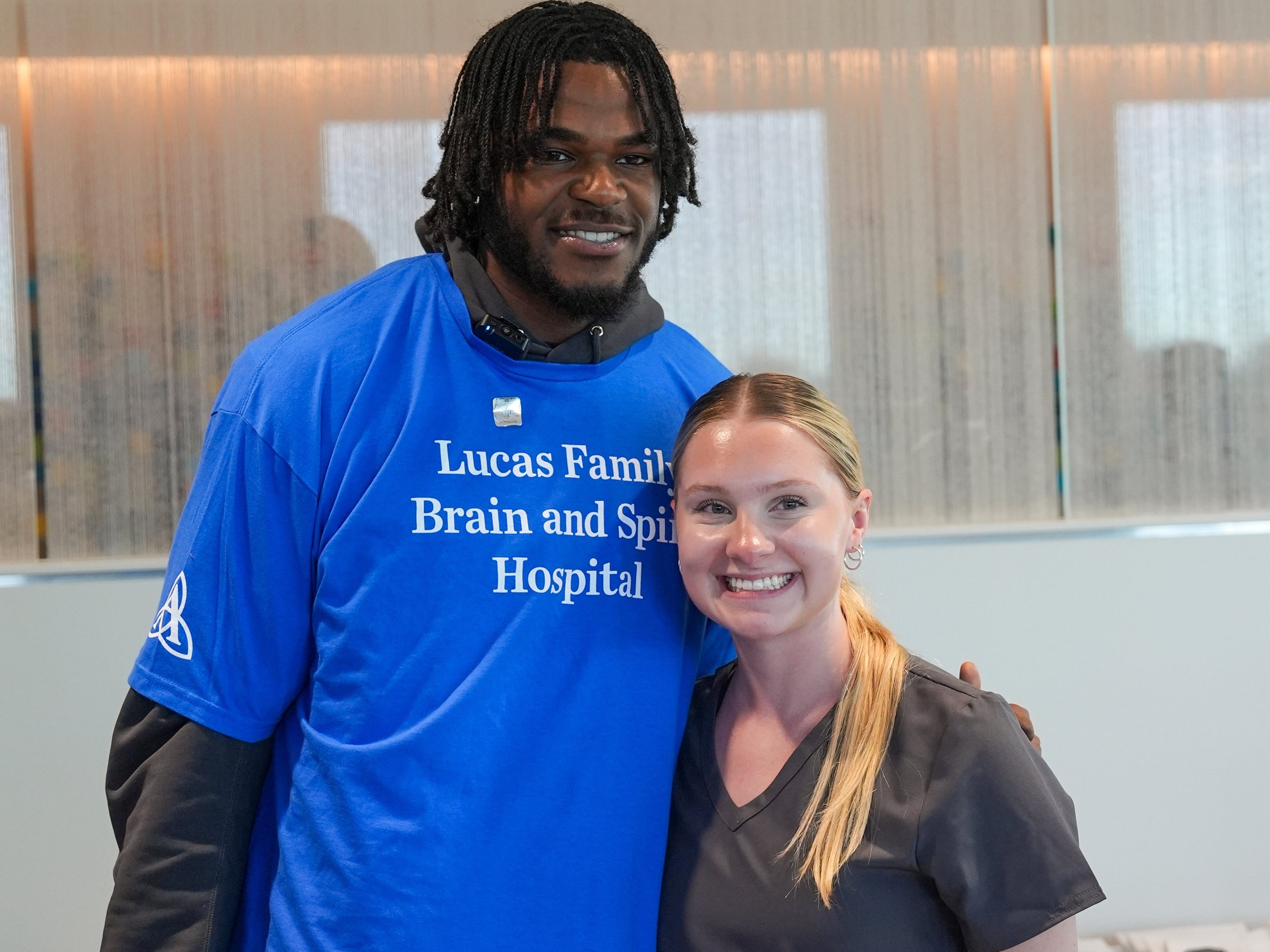 Jarace Walker with Ella Busch at the Lucas Family Brian and Spine Hospital. (Photo: PS&E)