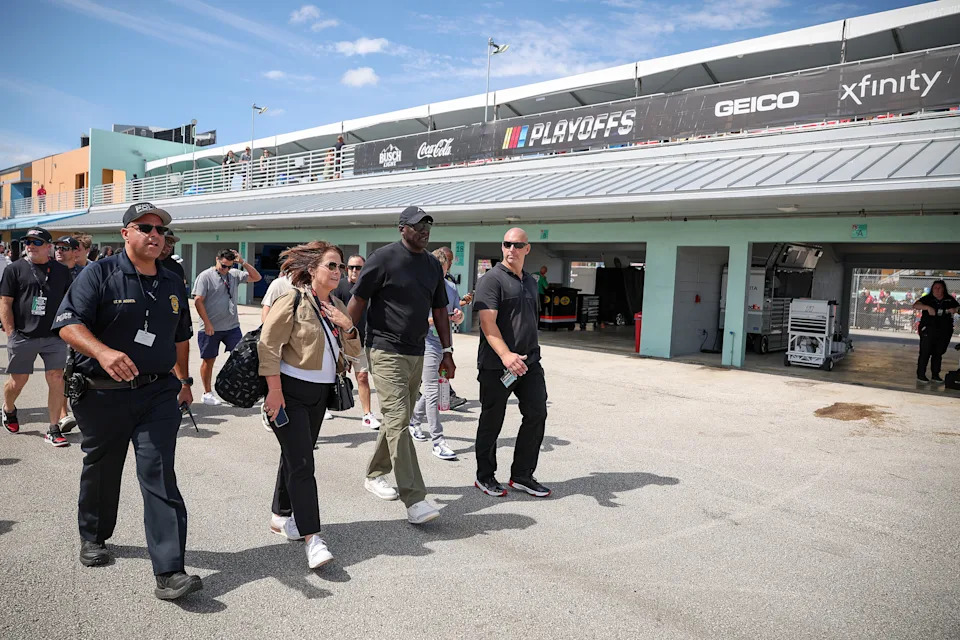 Michael Jordan, NBA Hall of Famer and co-owner of 23XI Racing, walks the grid prior to the NASCAR Cup Series Straight Talk Wireless 400 at Homestead-Miami Speedway on Oct. 27, 2024 in Homestead, Florida.