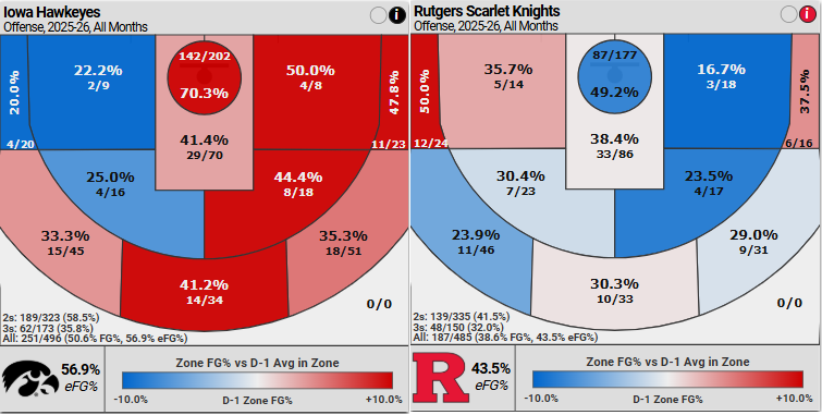 Shooting Heat Maps (CBB Analytics): Iowa and Rutgers