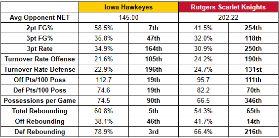 A deeper look at the advanced stats behind the matchup between the Hawkeyes and Scarlet Knights…