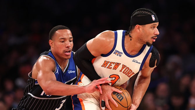 NEW YORK, NEW YORK – DECEMBER 07: Josh Hart #3 of the New York Knicks looks to pass the ball while being defended by Desmond Bane #3 of the Orlando Magic during the third quarter at Madison Square Garden on December 07, 2025 in New York City. Â (Photo by Ishika Samant/Getty Images)
