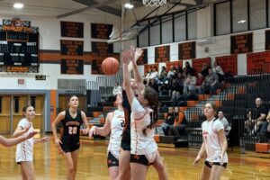 Reegan Perkins drained three 3-pointers and was a perfect 2-for -2 from the line for a team-high 11 points while Raegan Vogel had a three-pointer and seven points, Jaden Dunbat had five, Hailey Cowburn four and Caelyn Stevens one.