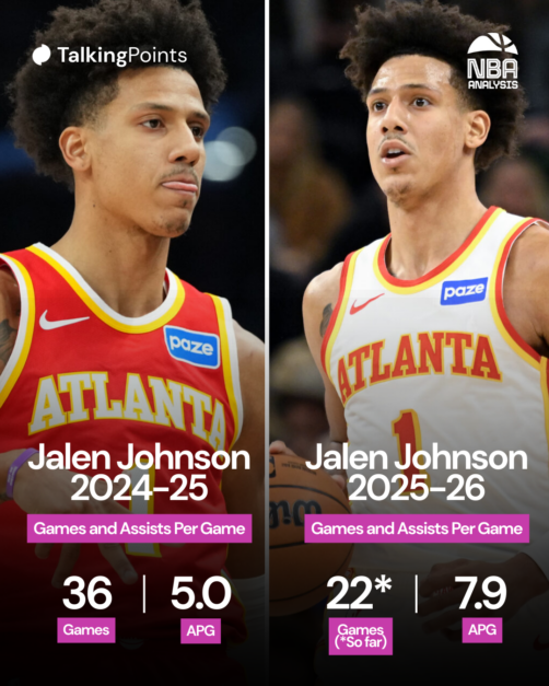 Johnson’s assist numbers show that he has taken a huge leap in his playmaking abilities. Not only is this good for him, but it also massively benefits the Atlanta Hawks.