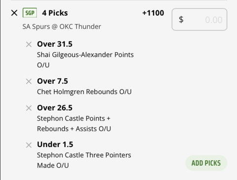ZT details his best player prop bets on DraftKings Sportsbook for tonight’s NBA Cup semifinal game between the Spurs and the Thunder.
