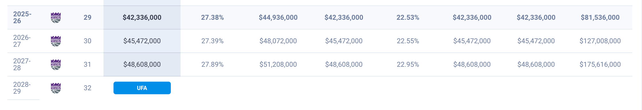 Domantas has 2 years left on his contract after this season, at $45.5 and $48.6 million per year, respectively, before entering free agency in 2028-29.