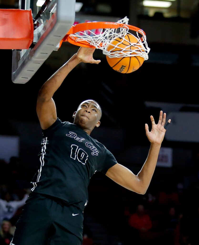 Del Ctiy’s Brandon Garrison dunks the ball in the second half during the Class 5A boys state basketball semifinal game between Del City and Carl Albert at the Lloyd Noble Center in Norman, Okla., Friday, March, 11, 2022 – © SARAH PHIPPS/THE OKLAHOMAN / USA TODAY NETWORK