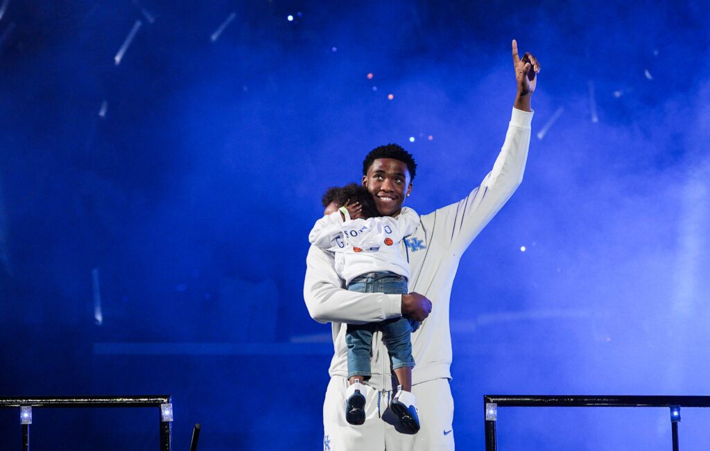The moment served as a coming-out party of sorts for Garrison and Akarii. After the season, Garrison came on KSR and opened up about his son to Ryan Lemond. For Father’s Day, he filmed a short video about Akarii for the UK Sports Network. At Big Blue Madness this season, Garrison even brought Akarii on stage with him, another idea from Pope, who helped lead the crowd in singing “Happy Birthday” to the now two-year-old.