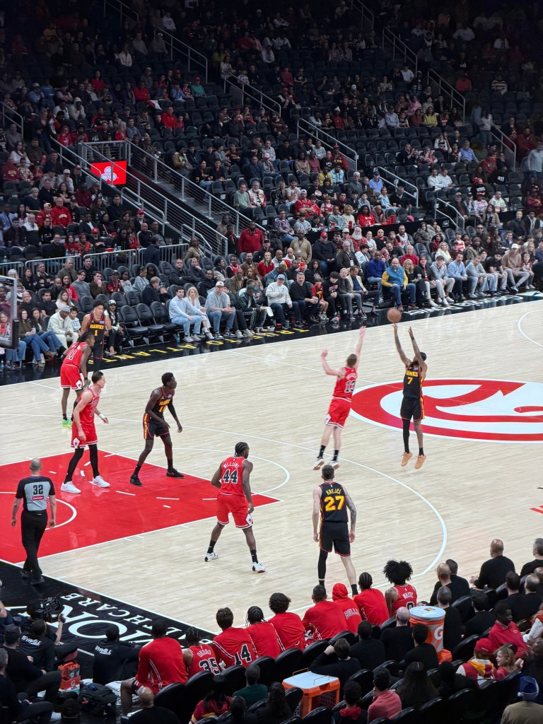 The teams exchanged leads early in the second quarter before the Bulls went ahead by seven points, 75-68, with a minute to play in the half. That lead would be extended to 10 points, 83-73, at halftime after Huerter hit a three-pointer in front of the Hawks’ bench.