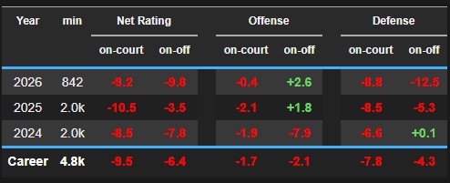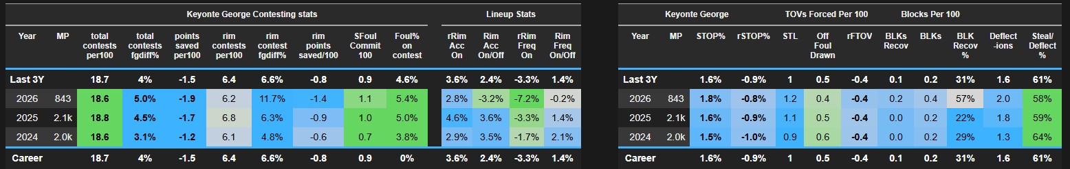 Now, are there some serious concerns about the defense? 1000% yes. In almost every defensive all-in-one metric, Keyonte George is likely to be found in the bottom 5-10 of the list. There is a visual increase in effort, but the production is still lackluster. For guards who have guarded over 100 opponent FGA, Keyonte George is ranked 5th in Defensive FGA. As poor a defender as he is, this is not Will Hardy intentionally making Keyonte the primary guard defender on the roster like Dyson Daniels and Ryan Rollins, who have more DFGA than Key, this is because he is being targeted by the opposing team.