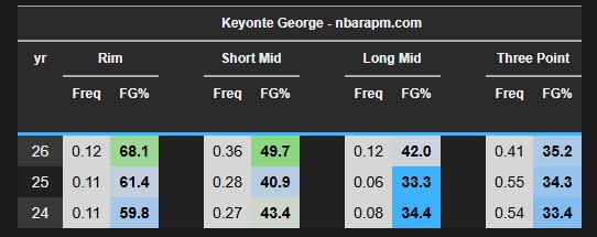 Another thing that could be a factor in his improved passing is his change in shot diet — by him bending defenses with his offensive gravity as he attacks downhill, it could present an increase in potential playmaking opportunities, and Key is capitalizing on opponents’ defensive lapses by making the correct reads.