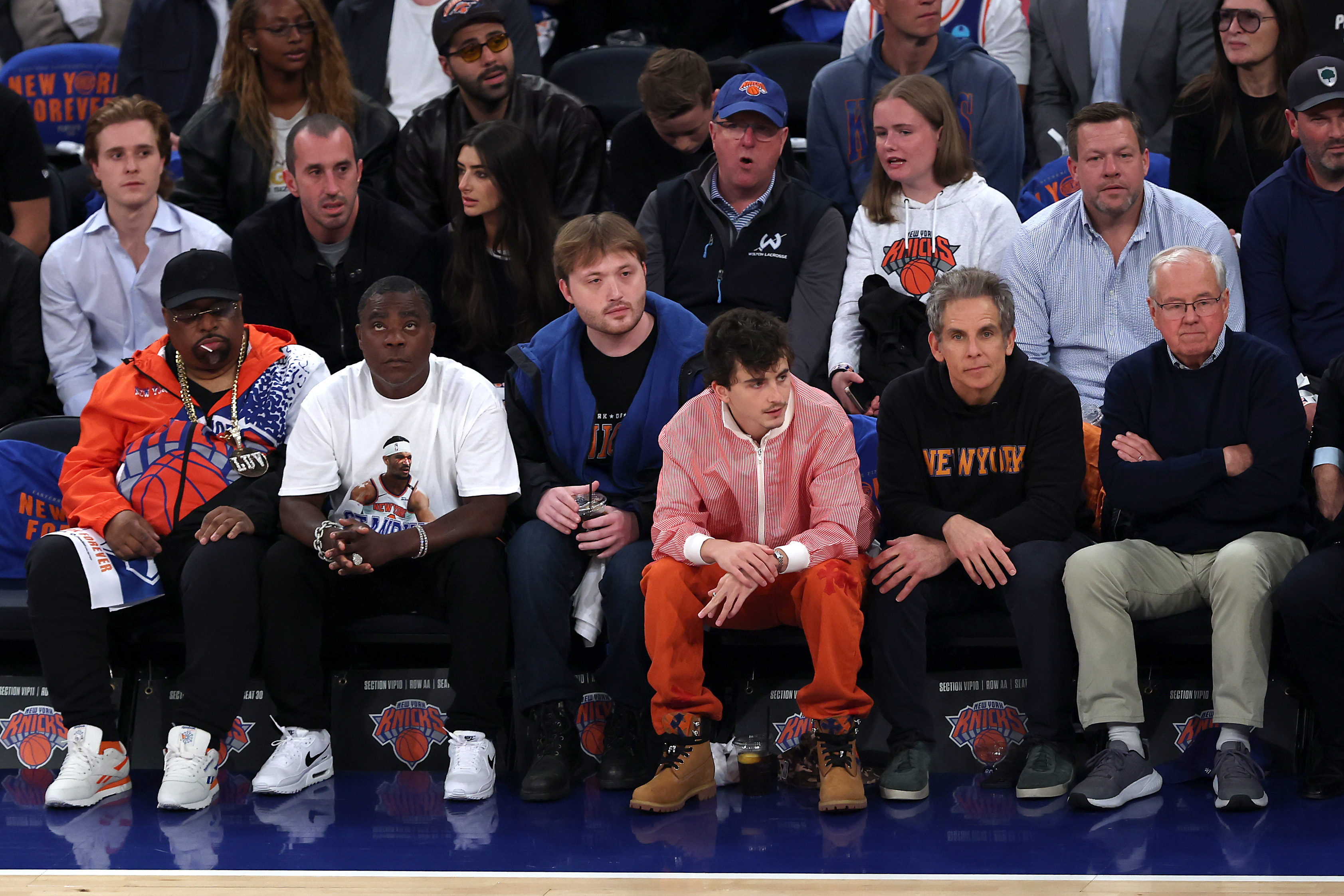 Timothée Chalamet, Ben Stiller and more stars attend Game 1 of the NBA Eastern Conference Finals to watch the New York Knicks vs the Indiana Pacers on May 21, 2025 at Madison Square Garden.