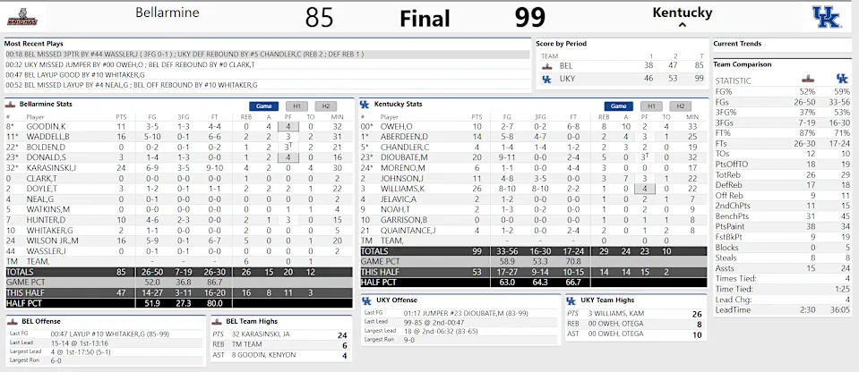 Kentucky led 46-38 at halftime, but Bellarmine made it work early by shooting well and living at the line.