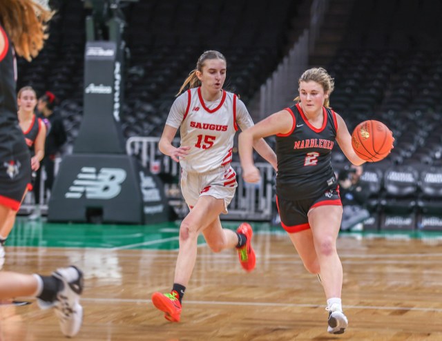 Mahan came through with three points, followed by Schmitt and Moran with two each. In this game, Marblehead had the lead at halftime, 21-15.