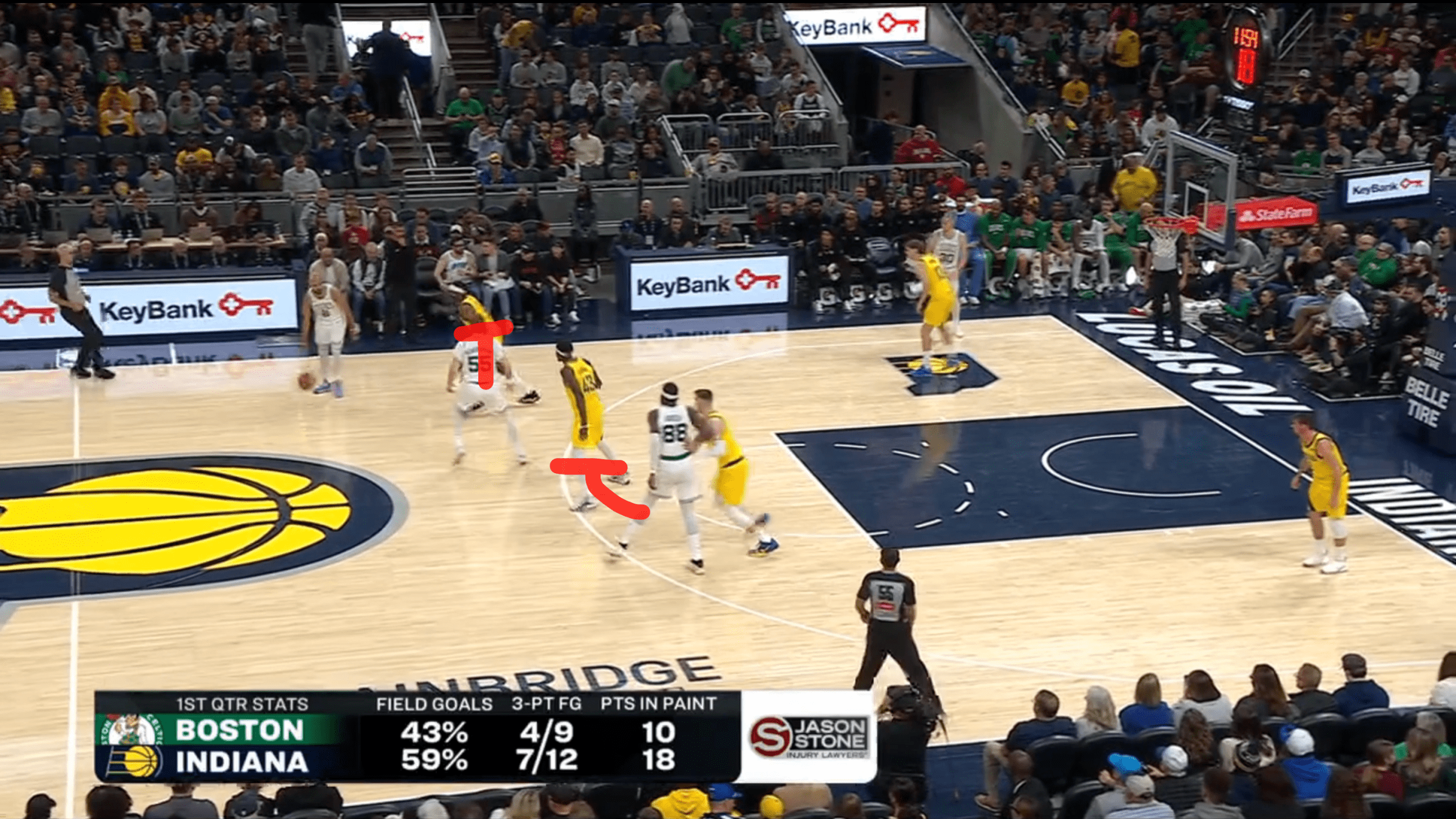 Pascal Siakam diagnosis and avoids the screen, but the mission was accomplished. The point of the shooter setting the back screen is to get his defender to either pause for a second, get off his body to help on the screen, or miscommunicate the coverage with his teammate.