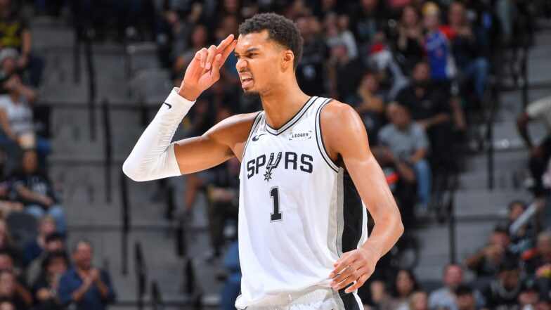 Victor Wembanyama looks to lead the San Antonio Spurs back into the win column when they host Donovan Mitchell and the Cleveland Cavaliers on Peacock and NBC. (Photos by Michael Gonzales/NBAE via Getty Images)